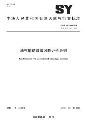 油氣輸送管道風險評價導則SY∕T 6859-2020:本標準代替SY/T 6859—2012《油氣輸送管道風險評價導則》,與SY/T 6859—2012相比,除編輯性修改外,主要技術內容變化如下: