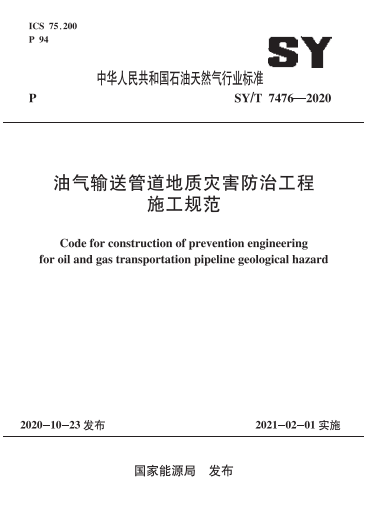 油氣輸送管道地質(zhì)災(zāi)害防治工程施工規(guī)范SY∕T 7476-2020