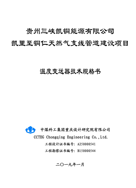 天然氣支線管道建設(shè)項(xiàng)目站場控制設(shè)備自控_溫度變送器技術(shù)規(guī)格書