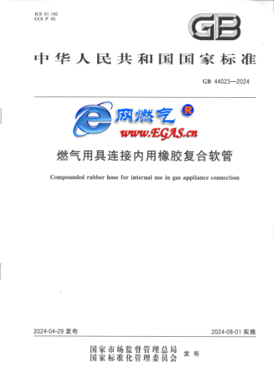 燃?xì)庥镁哌B接內(nèi)用橡膠復(fù)合軟管GB 44023-2024